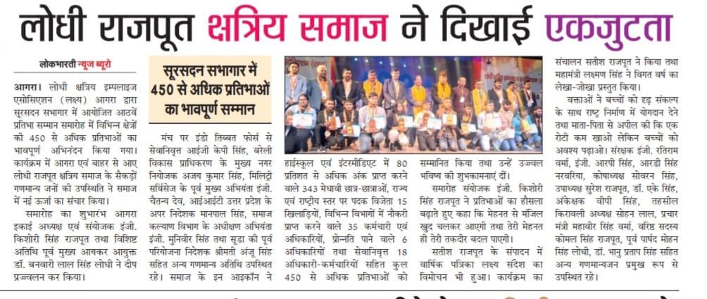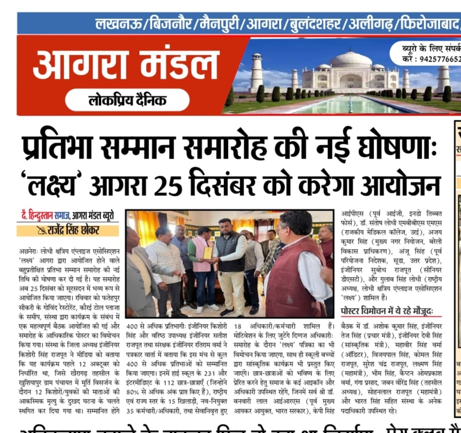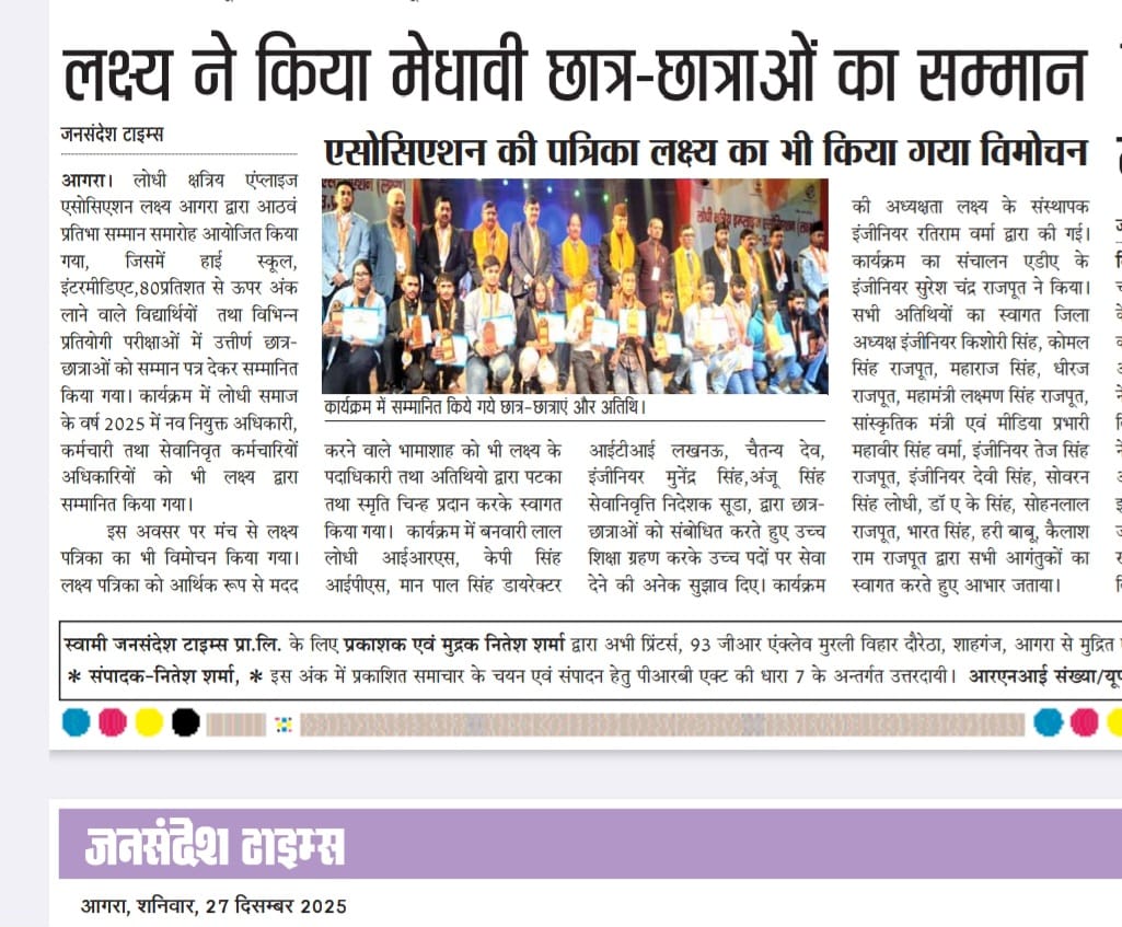लक्ष्य का अष्टम प्रतिभा सम्मान समारोह एवं पत्रिका विमोचन कार्यक्रम 2025 , सूरसदन , आगरा ।